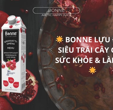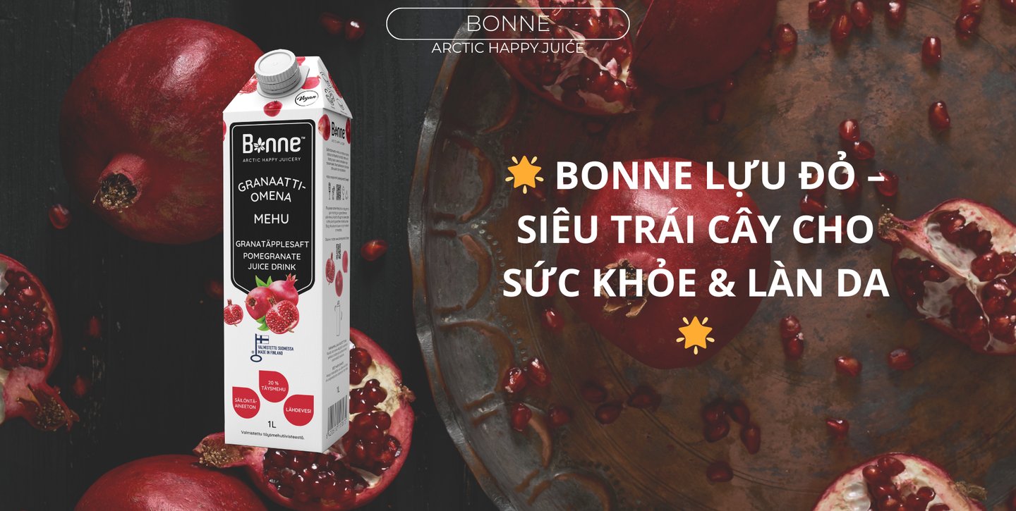 Không chỉ là thức uống giải khát, nước ép lựu đỏ Bonne còn là lựa chọn bổ sung dưỡng chất tự nhiên, hỗ trợ sức khỏe tim mạch, làn da và hệ miễn dịch.