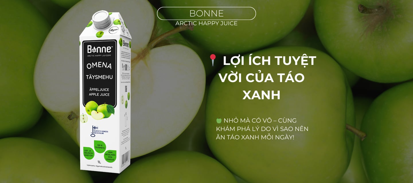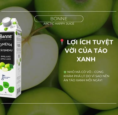 Nước ép táo xanh Bonne không chỉ là thức uống giải khát mà còn giúp bổ sung vitamin, hỗ trợ tiêu hóa và duy trì sức khỏe tổng thể.